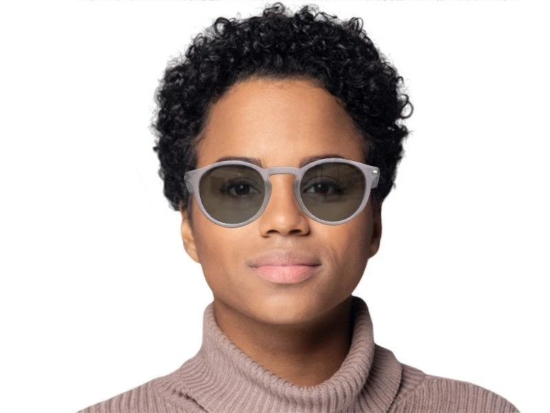 meisten Modestyles, Frisuren und Hautfarben. Die Farbe der Gläser ist Grau. Das