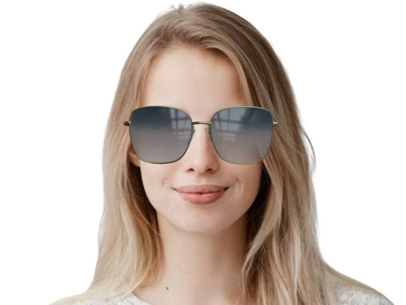entspannt. Die Glasfarbe ist Grün. Die Brille reduziert die Helligkeit und ist