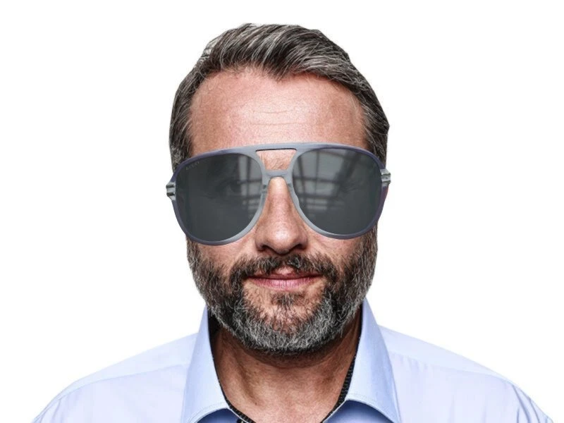 allen Gesichtsformen passt. Die Farbe des Rahmens ist Grau. Er passt dadurch