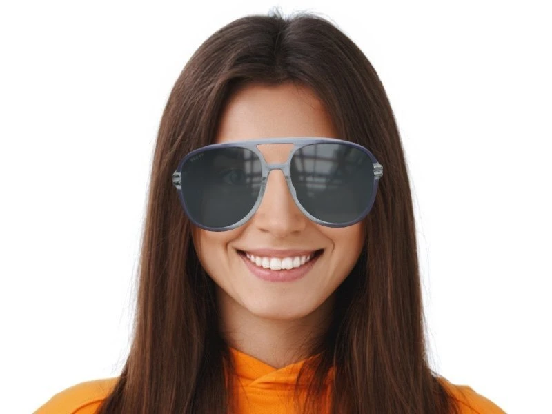Outfit. Die Farbe der Gläser ist Grau. Das reduziert blendendes Licht und