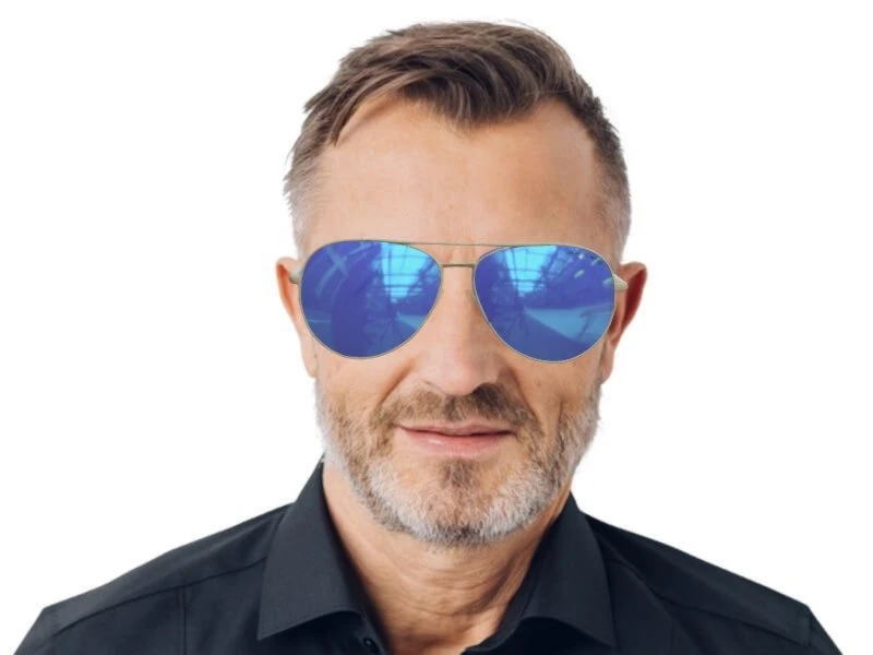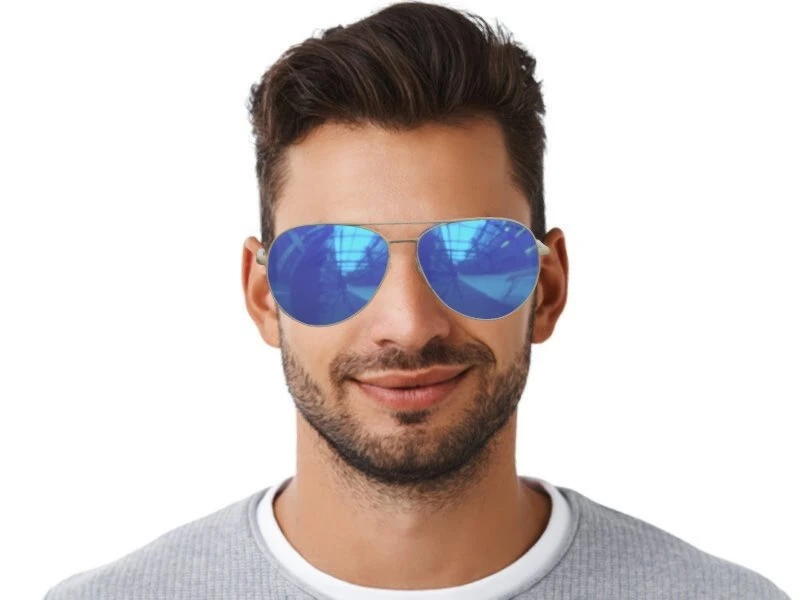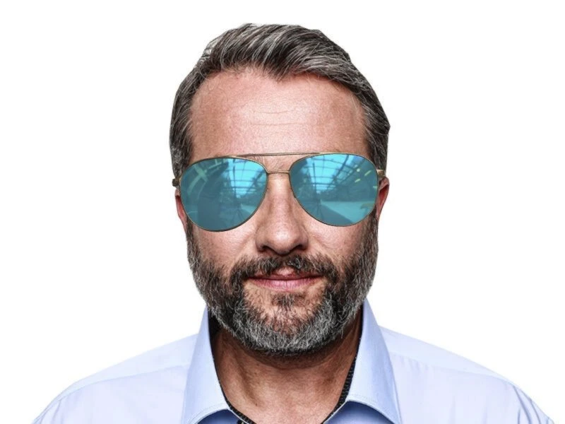 einer Pilotenbrille, die perfekt zu allen Gesichtsformen passt. Die Hauptfarbe