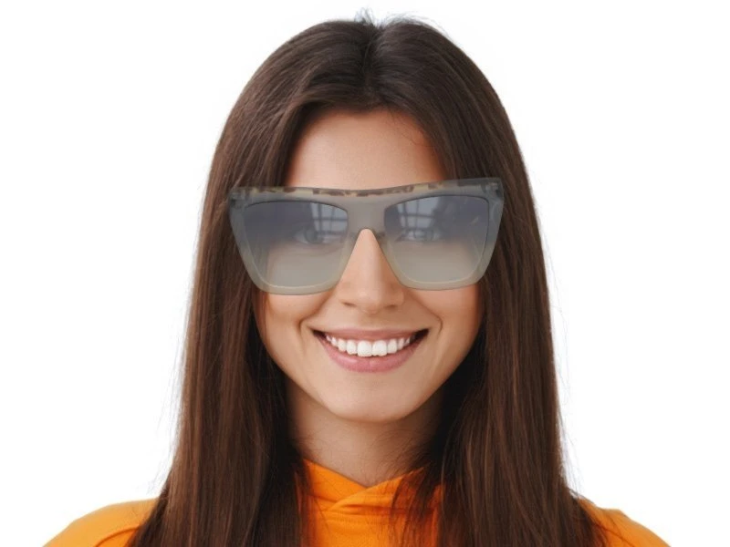 Farbe der Gläser ist Grau. Das reduziert blendendes Licht und verbessert das