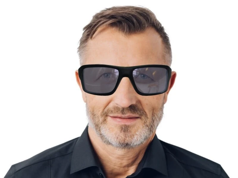 Gesichtsformen. Die Hauptfarbe des Brillenrahmens ist Schwarz. Er lässt sich