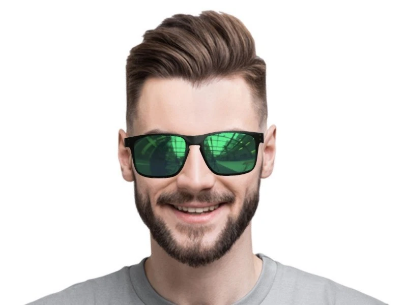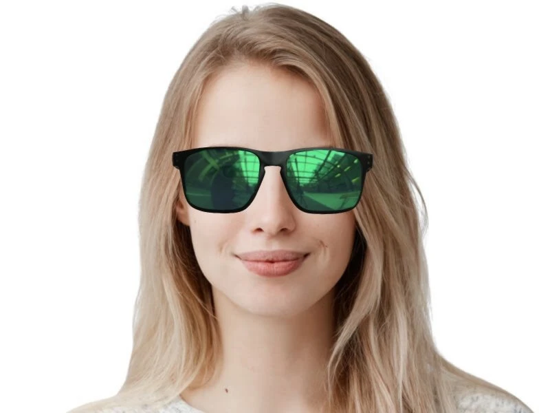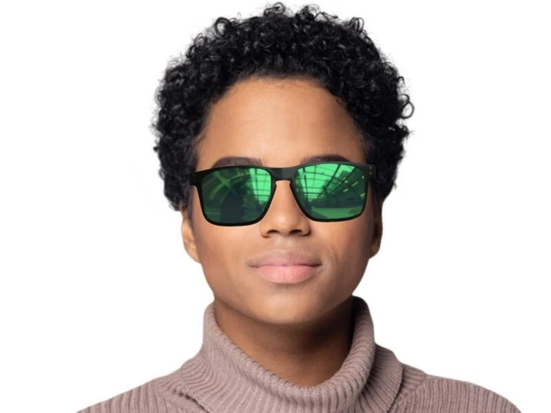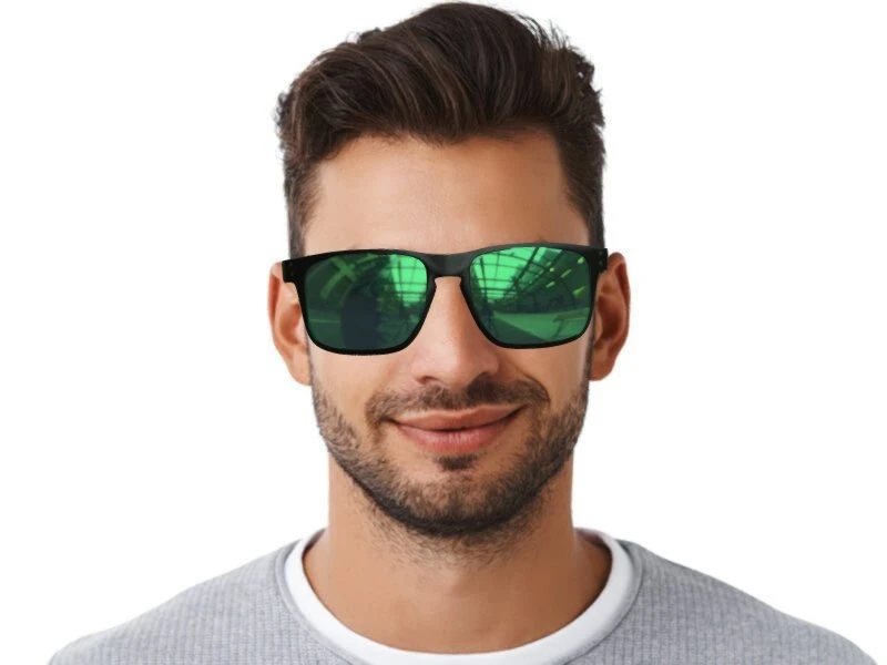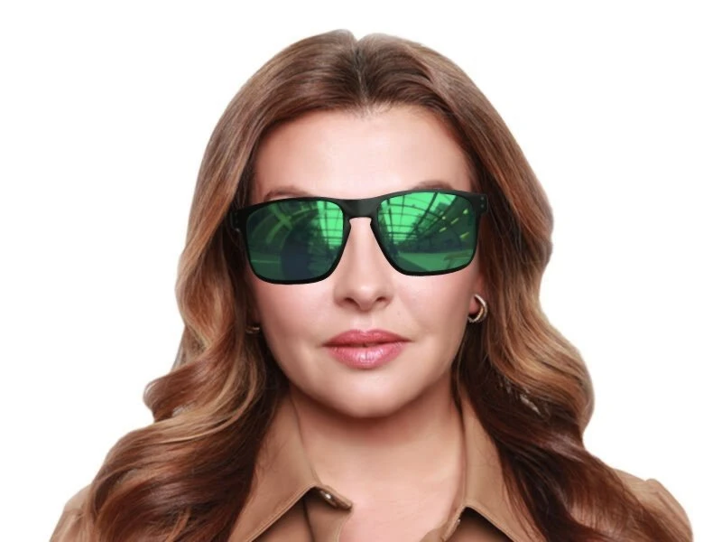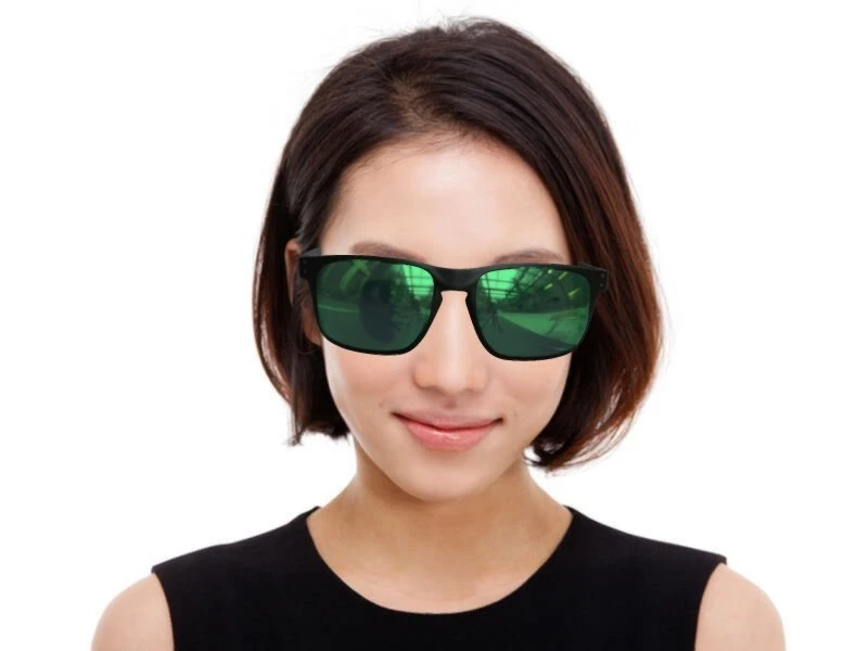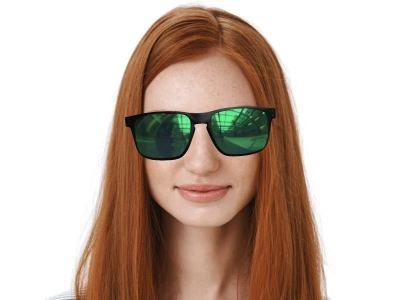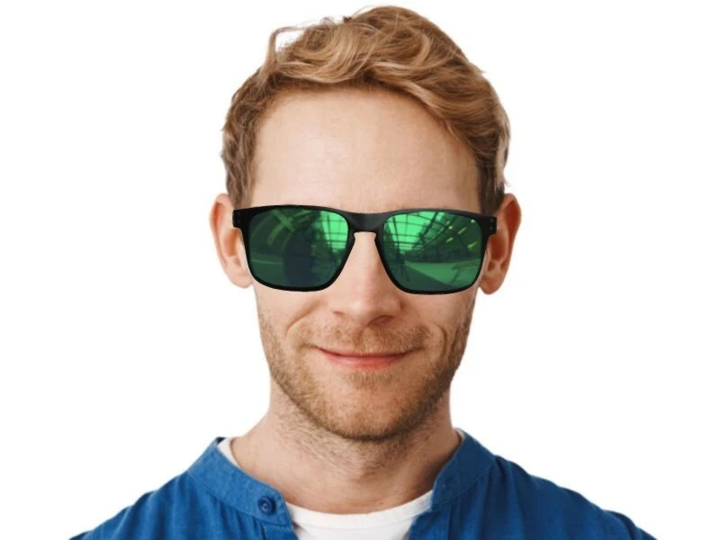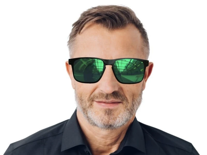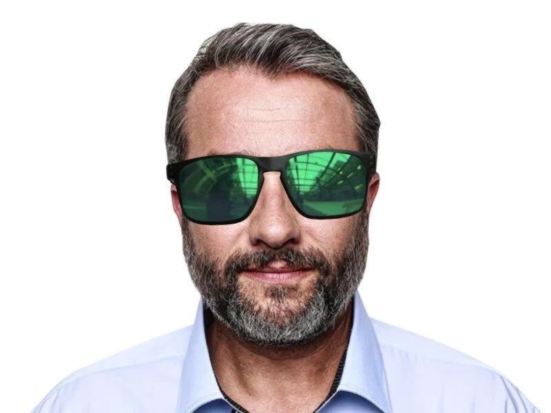 Alltag. Die Glasfarbe ist Grün. Die Brille reduziert die Helligkeit und ist