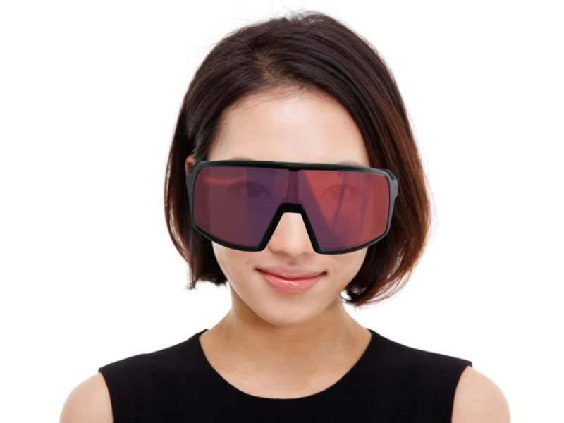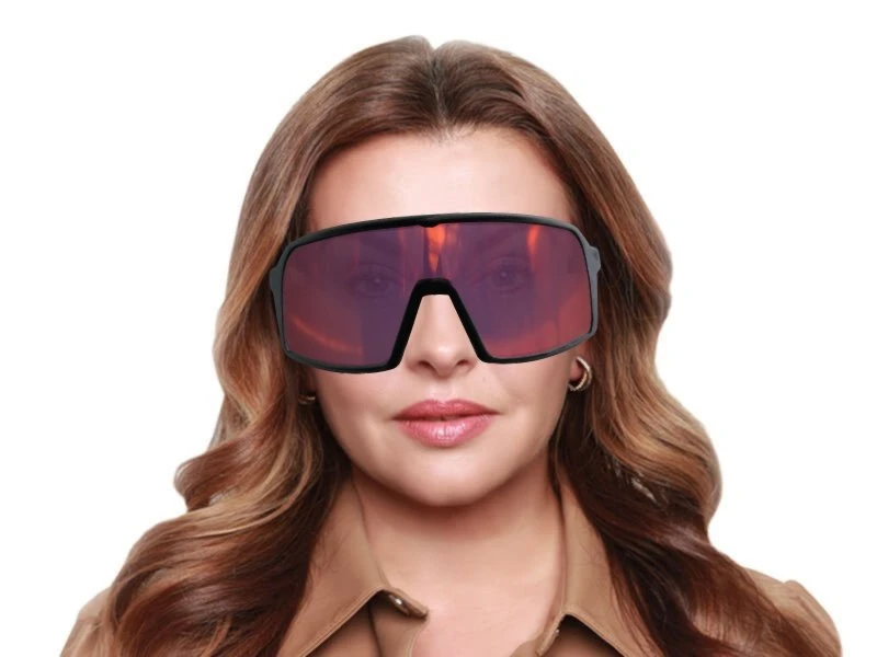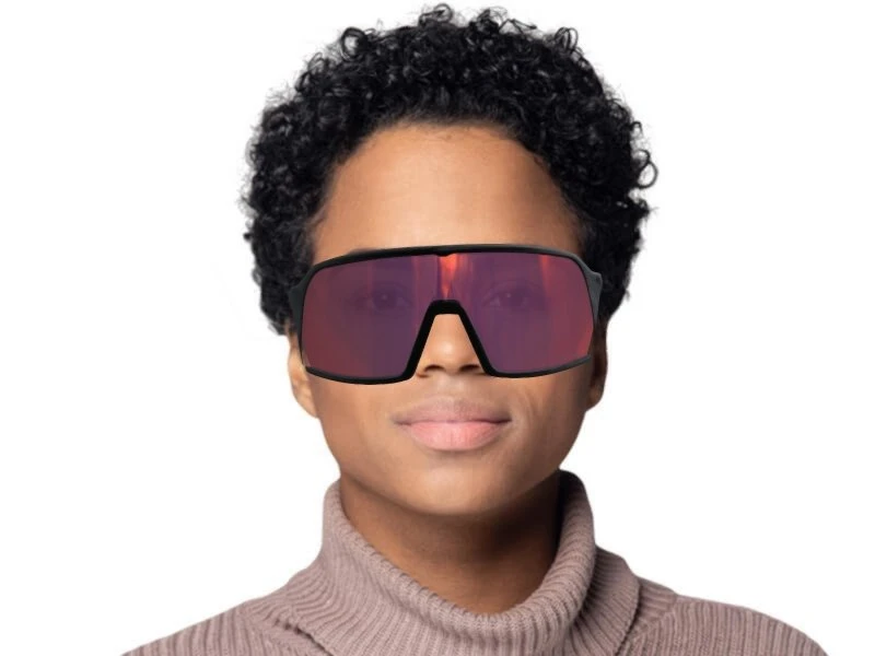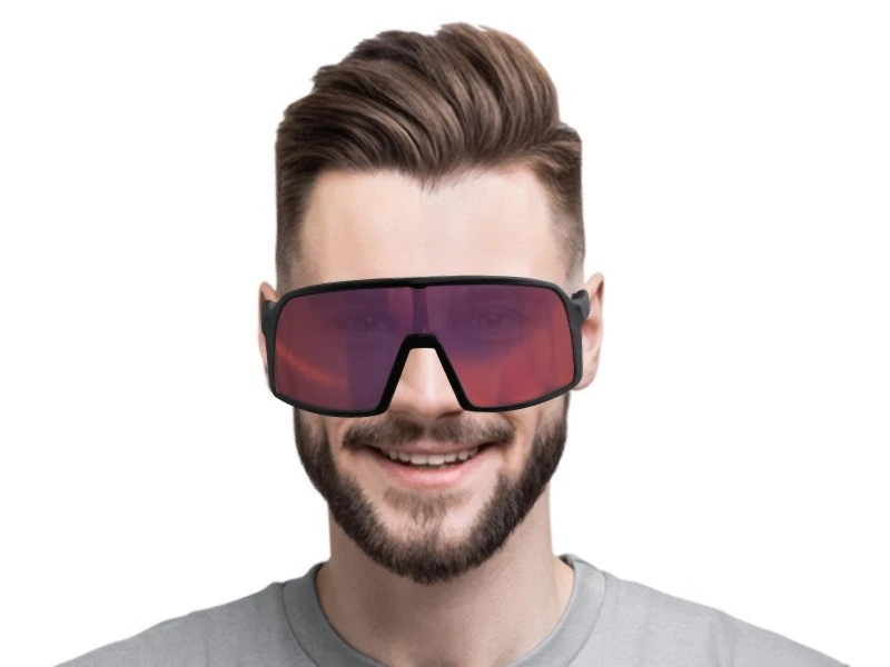 (Monoscheibe) geprägt. Die Hauptfarbe des Brillenrahmens ist Schwarz. Er lässt