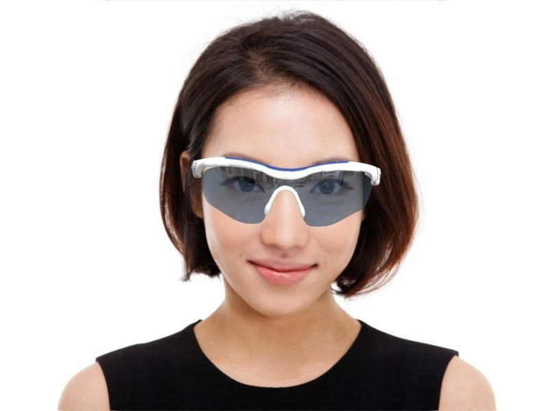 Blau, was ideal ist, um Helligkeit zu reduzieren. Die Gläser besitzen eine