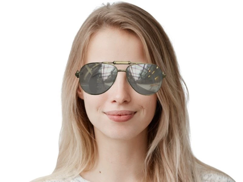 die perfekt zu allen Gesichtsformen passt. Die Hauptfarbe des Rahmens ist Gold.