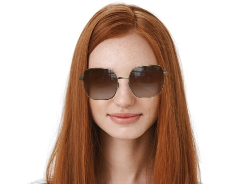 diamantenen und runden Gesichtsformen. Die Hauptfarbe des Rahmens ist Gold. Er